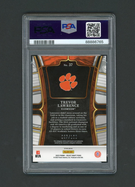 2023 Select Draft Picks Trevor Lawrence Blue & White Squares PSA 9 /100